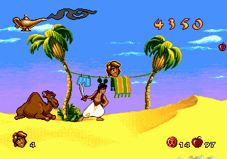 Когда вы наткнетесь на бельевую веревку с мышиными ушами, то поставьте Аладдина так, чтобы когда вы ничего не нажимаете Аладдин примерил эти уши и тогда появится жизнь.