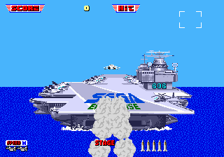 Aircraft simulator. The plane is similar to the F-14, and it starts from an aircraft carrier, armed with cannons and missiles, and can refuel in mid-air. The game is more arcade: fly forward and shoot down bad planes (and where do they come from?). You don't have to worry about the machine gun: it shoots all by itself. The graphics and sound are not bad.