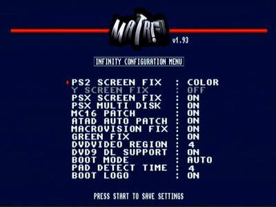 (Сама консоль PAL 90008 Чип ModBo 4.0 прошивку не знаю, в меню чипа написано MATRIX v1.93 Infinity Configuration Menu)
