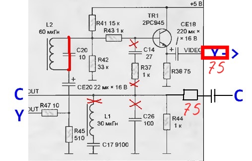 3) Нужно ли при сборке S-video разбирать штатный композитный видеоусилитель или достаточно подпаяться к выводам Yout и Cout чипа?