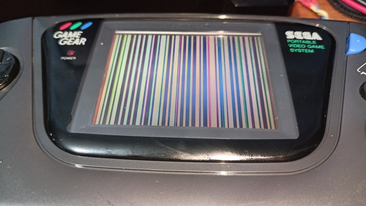 Портативка запустилась, лампа зажглась, звук из игры пошел, но на экране вертикальные радужные полосы, причем наличие картриджа не имеет значения, полосы включаются всегда.