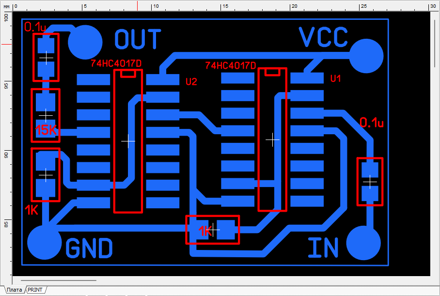 Всем доброго времени суток! Многовероятно что на форуме уже есть какой нибудь материал по подобному вопросу, но я всё же поделюсь успешной работе по переводу SEGA в PAL 60Hz,  в моём случае это полноплатный клон на кодере KA2198BD, посредством установки делителя частоты на 12-ть. Предыстория: при помощи кварца 4.43 ничего не получалось, даже отдельным генератором подавал гармонику на кодер, толку ноль. Как говориться не нашёл выход, пошёл искать вход. На форумах нашёл похожий вопрос - делитель на 12 и 15 - оно! Заказал в Чип и Дип два декадных счётчика с частотой до 83Mhz, по готовой схеме развёл платку в SprintLaout, вытравил, спаял - накинул для теста генератор с кварцем 12Мг и вуаля, на выходе 1Мг! Работает! Накинул на консольку и вуаля! Фиг!  :lol: Смотрю осциллографом гармонику, а частота словно поделена на 15-ть, как на НТСЦ! Почесал репу, посмотрел схемы с форума, ну не должно быть ошибки! Так ради эксперимента собрал схемку с делением на 15 с того же форума, а частота на выходе ниже 30Мг., понятно, автор собирал схему в эмуляторе, там всё работало, а по факту оказалось маленько по другому, словом я модифицировал схемку, физически я поднял одну ножку и перерезал одну дорожку, ну и пару перемычек пришлось кинуть, проверяю и ура. Частота PAL 60! Картинка сочная цветная, скорость игрулек динамичная, полей сверх/низу нет! Словом, я считаю не плохой вариант, в частности насмотрелся в инете инфу что рассинхронизация может лезть с отдельным кварцем (есть видео на ЮТЮБЕ похожего мода, но парень там никаких схем не выложил...). Принципиальную схему не рисовал, накидал на ходу печатку отталкиваясь от двух источников (схем), тут выложу все материалы + исправленная/рабочая часть схемы что с форума. Да, печатка "релиз" в практике не проверялась, исправления я внёс, но ещё не изготавливал, хотя она один в один с рабочим вариантом, что сейчас на приставке. Да, сигнал можно подавать на 6-ю ногу кодера напрямую, амплитуда меандра 180mV, фактически такая же как и штатная. Надо ещё четыре счётчика заказать, дома ещё два таких же клона лежат, тоже надо к толковому состоянию привести)) Всем удачи в ремонтах!  :thumbup:
